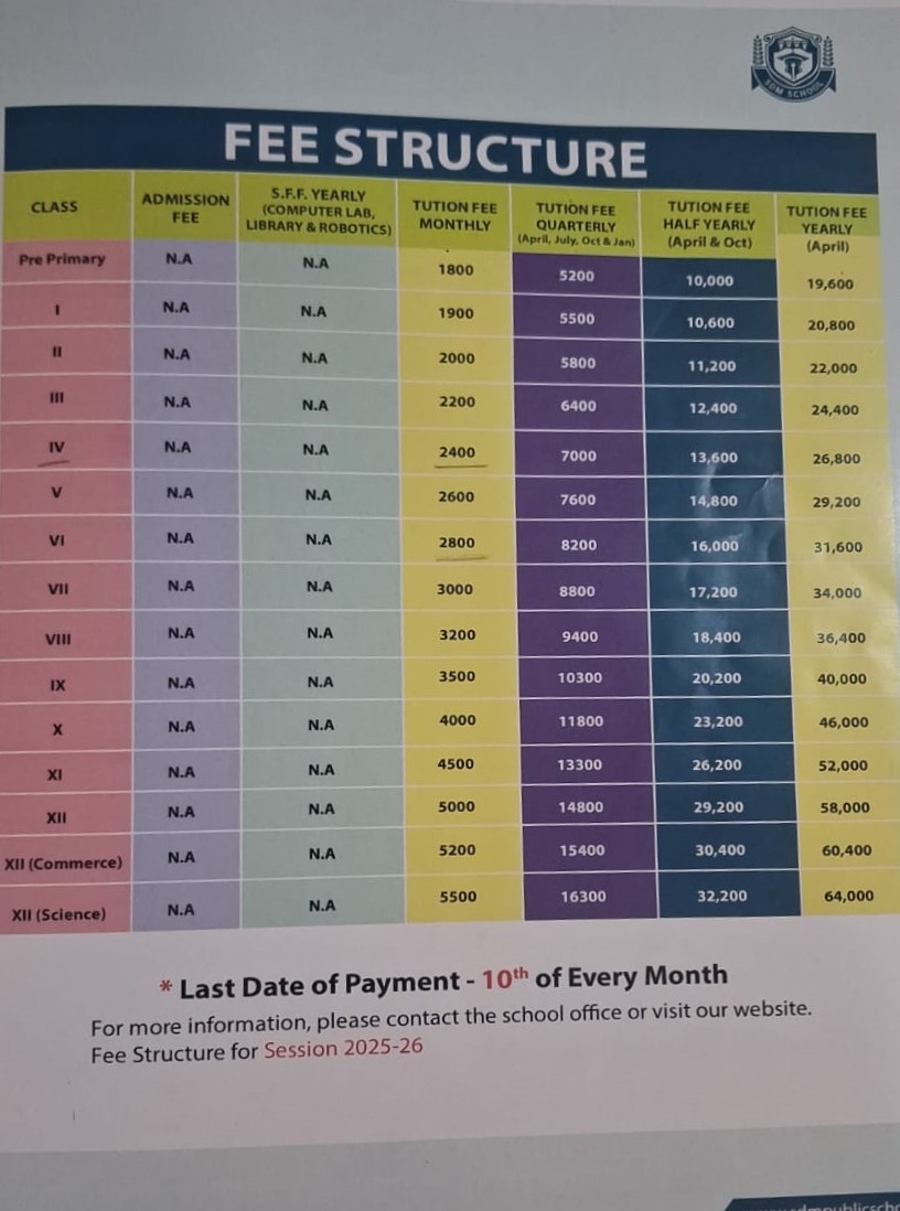FEE STRUCTURE OF THE SCHOOL